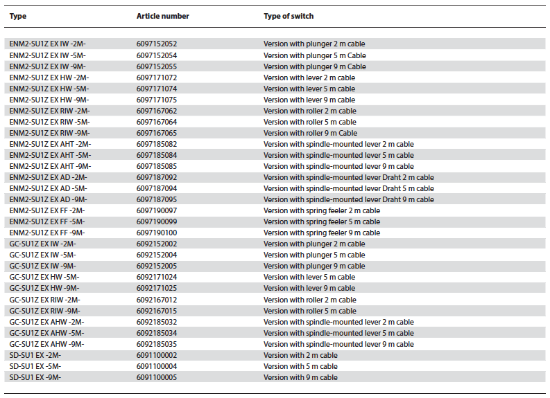 Position Switch series ENM2 and GC, Rope Pull Switch SD